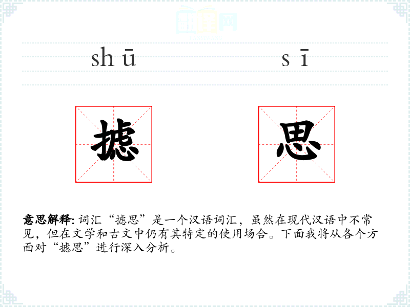 词汇“摅思”是一个汉语词汇,虽然在现代汉语中不常见,但在文学和古文中仍有其特定的使用场合。下面我将从各个方面对“摅思”进行深入分析。