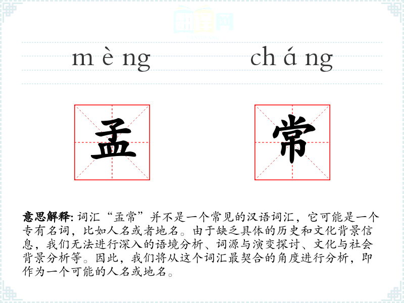 - 由于缺乏具体信息,无法探讨“孟常”的词源和历史演变。