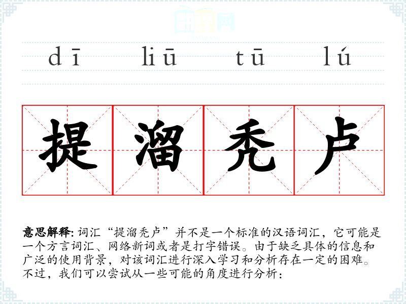 由于“提溜秃卢”不是一个标准词汇,我们无法给出确切的基本定义。它可能是某个地区方言中的词汇,或者是网络上的一个特定社群创造的新词。
