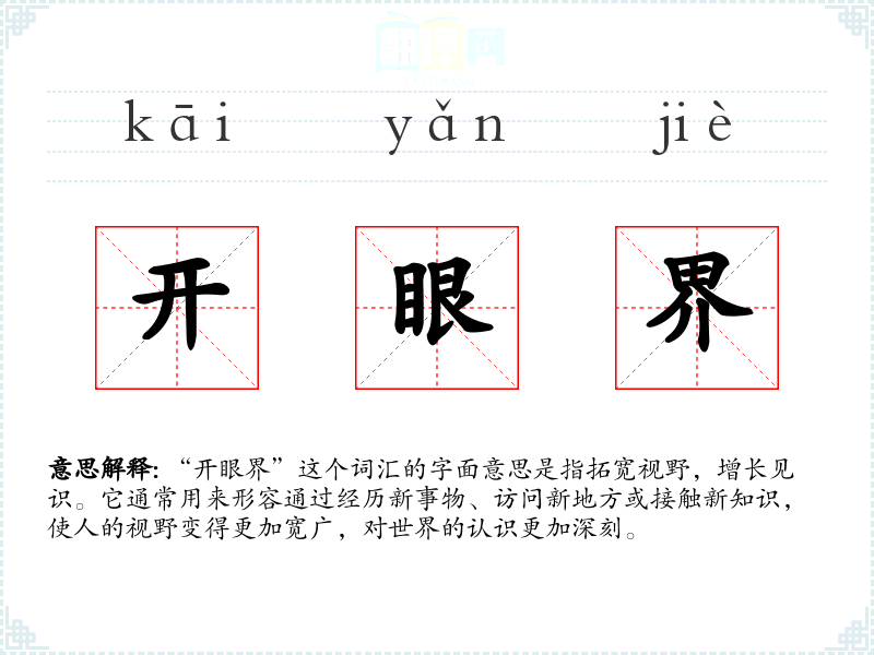 “开眼界”这个词汇源于汉语,其中“开”意味着打开或拓宽,“眼界”指的是视野或见识的范围。随着时间的推移,这个词汇被广泛用于描述通过各种方式拓宽个人视野的行为或结果。