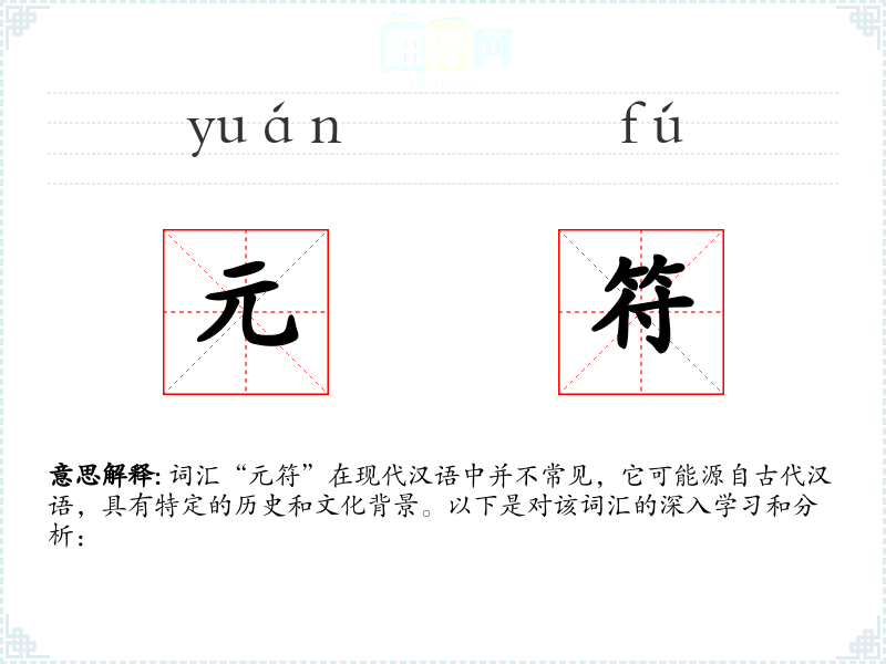 词汇“元符”在现代汉语中并不常见,它可能源自古代汉语,具有特定的历史和文化背景。以下是对该词汇的深入学*和分析:
