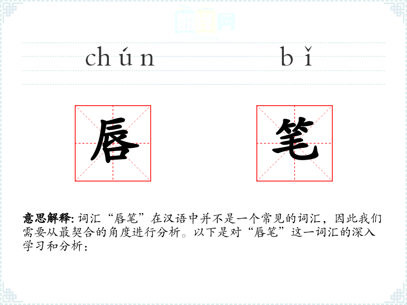词汇“唇笔”在汉语中并不是一个常见的词汇,因此我们需要从最契合的角度进行分析。以下是对“唇笔”这一词汇的深入学习和分析: