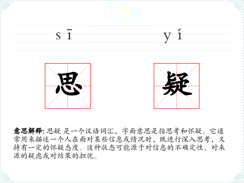 在英语中,思疑 可以对应为 "doubtful contemplation" 或 "suspicious thinking"。在不同文化中,虽然表达方式不同,但对信息持有怀疑态度并进行深入思考的行为是普遍存在的。