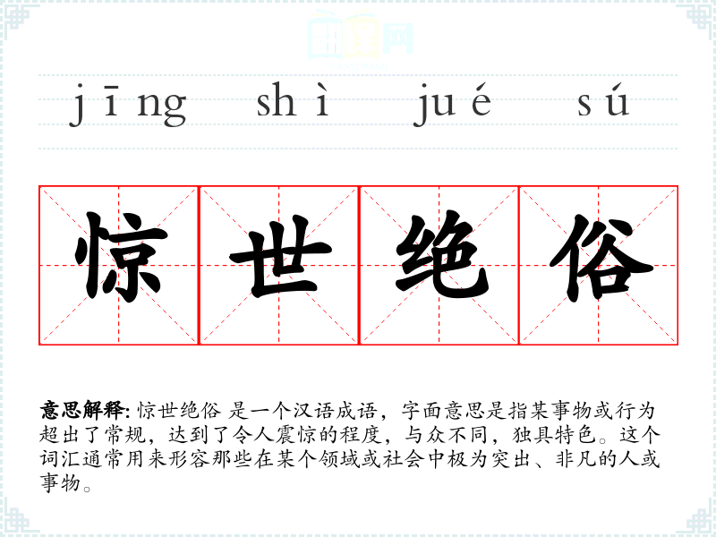 "惊世绝俗"的意思解释、惊世绝俗是什么意思由翻译网汉语词典查词提供。