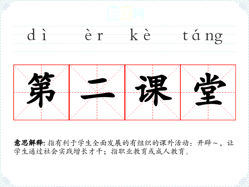 指有利于学生全面发展的有组织的课外活动:开辟~,让学生通过社会实践增长才干;指职业教育或成人教育。