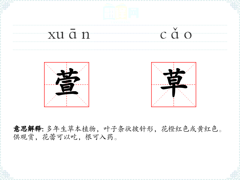 多年生草本植物,叶子条状披针形,花橙红色或黄红色。供观赏,花蕾可以吃,根可入药。