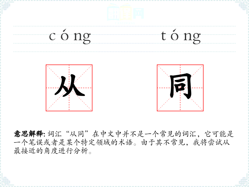 词汇“从同”在中文中并不是一个常见的词汇,它可能是一个笔误或者是某个特定领域的术语。由于其不常见,我将尝试从最接近的角度进行分析。