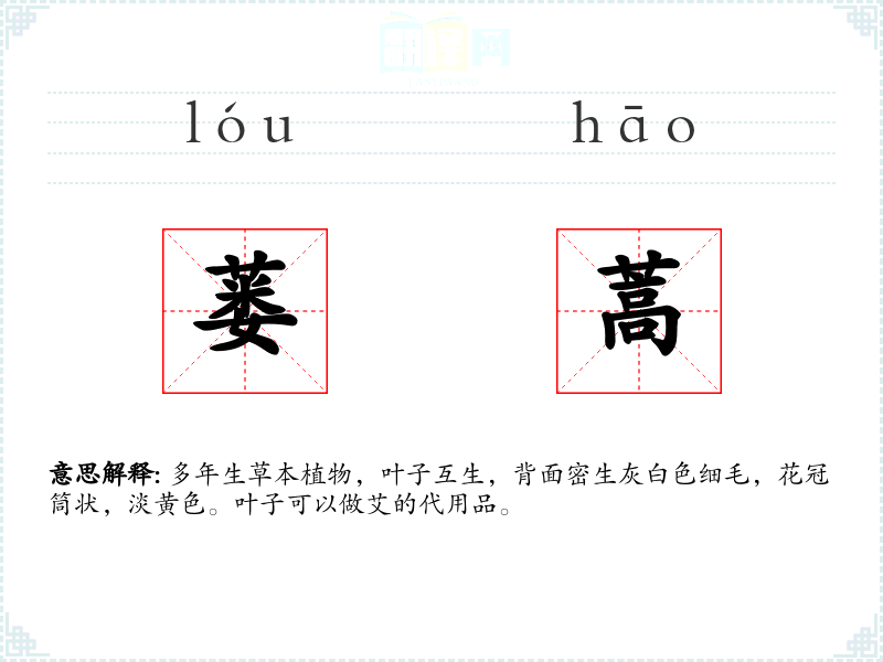 蒌蒿的分字解释