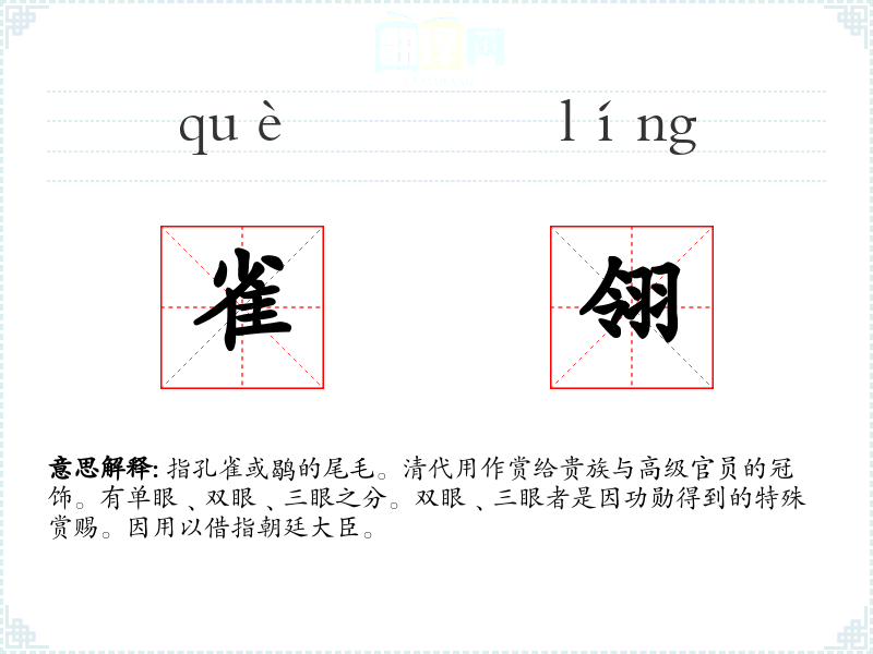 雀翎的分字解释