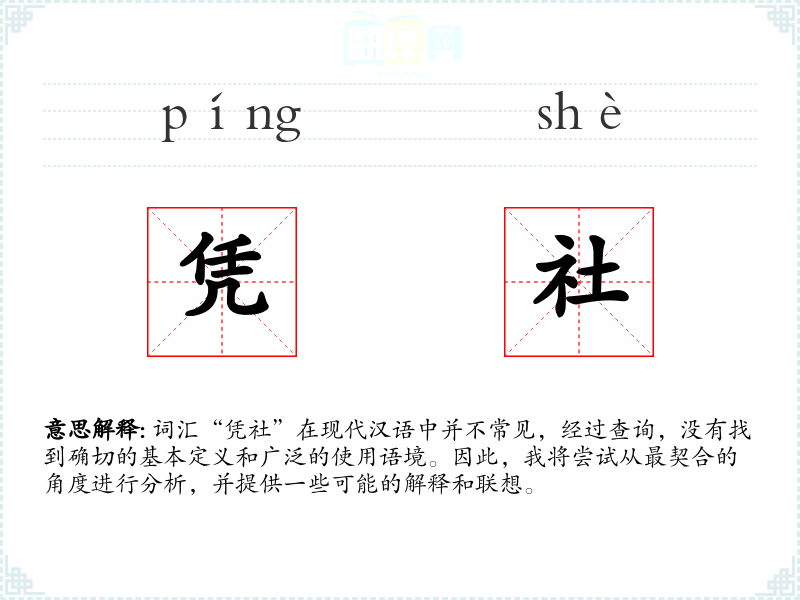 由于“凭社”不是一个常用词汇,它在不同语境下的使用非常有限。在古代文献或特定的地方方言中,可能会有使用,但在现代标准汉语中,几乎没有确切的使用案例。
