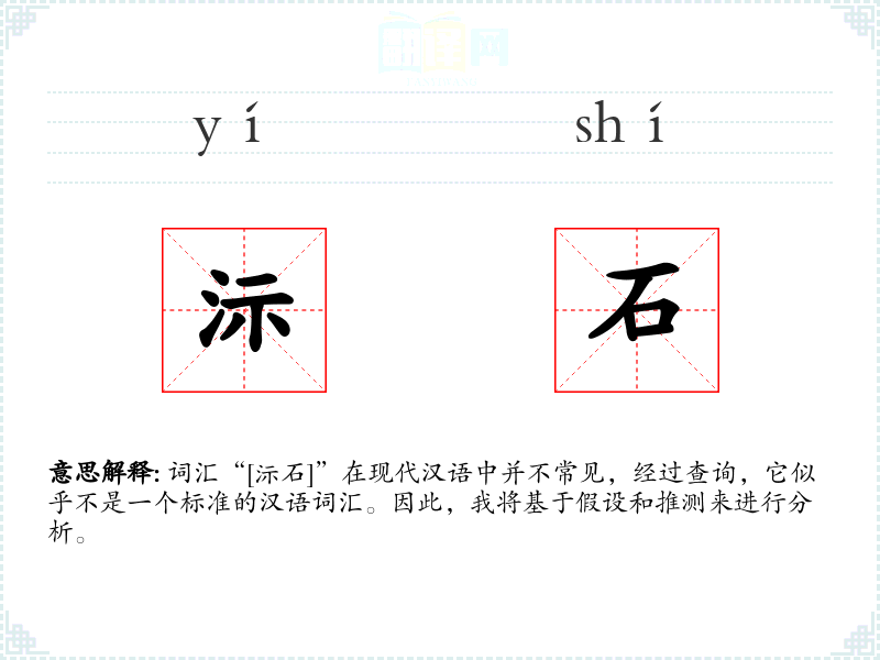 词汇“[沶石]”在现代汉语中并不常见,经过查询,它似乎不是一个标准的汉语词汇。因此,我将基于假设和推测来进行分析。
