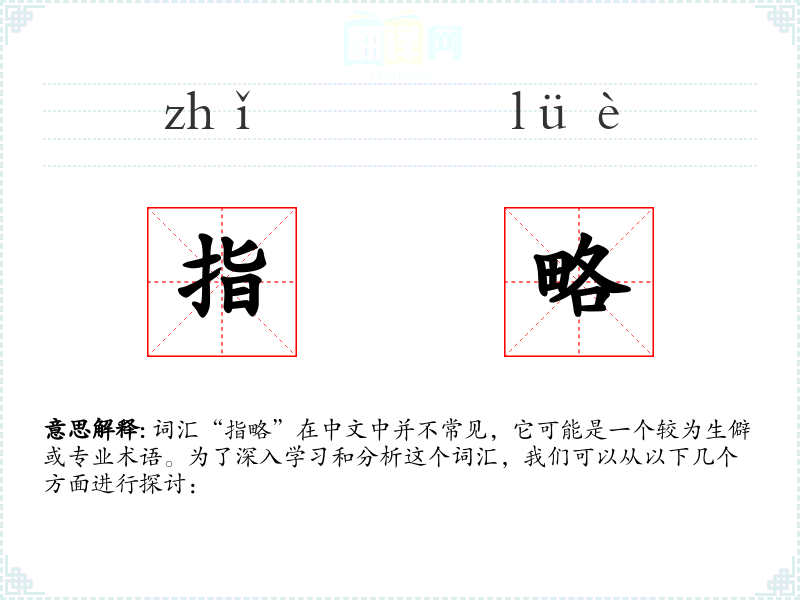 词汇“指略”在中文中并不常见,它可能是一个较为生僻或专业术语。为了深入学*和分析这个词汇,我们可以从以下几个方面进行探讨: