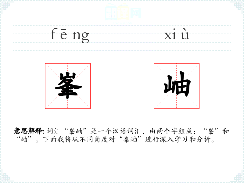 - 专业领域:在地理学或地质学中,可能会用“峯岫”来具体描述山脉的结构。
