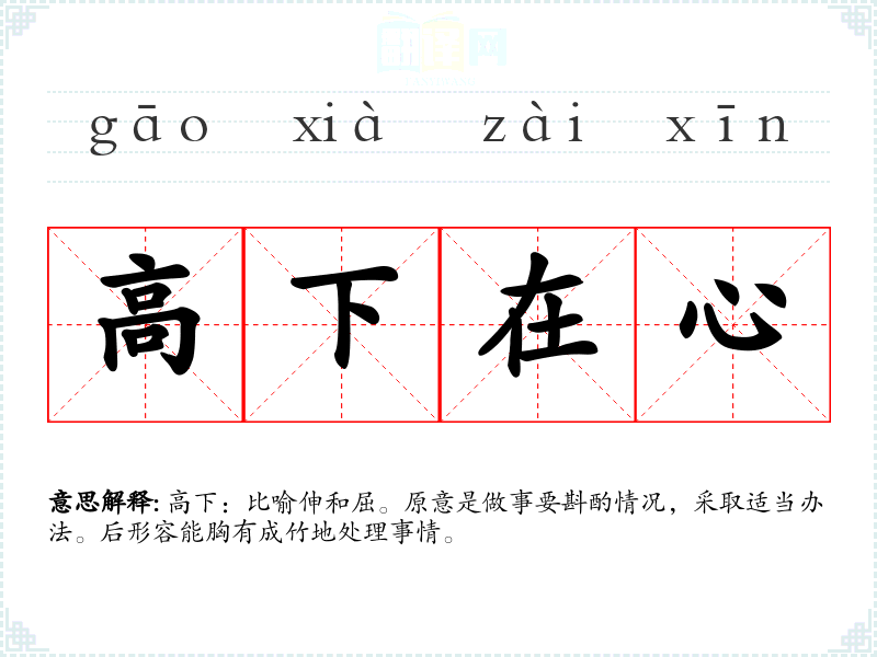 高下:比喻伸和屈。原意是做事要斟酌情况,采取适当办法。后形容能