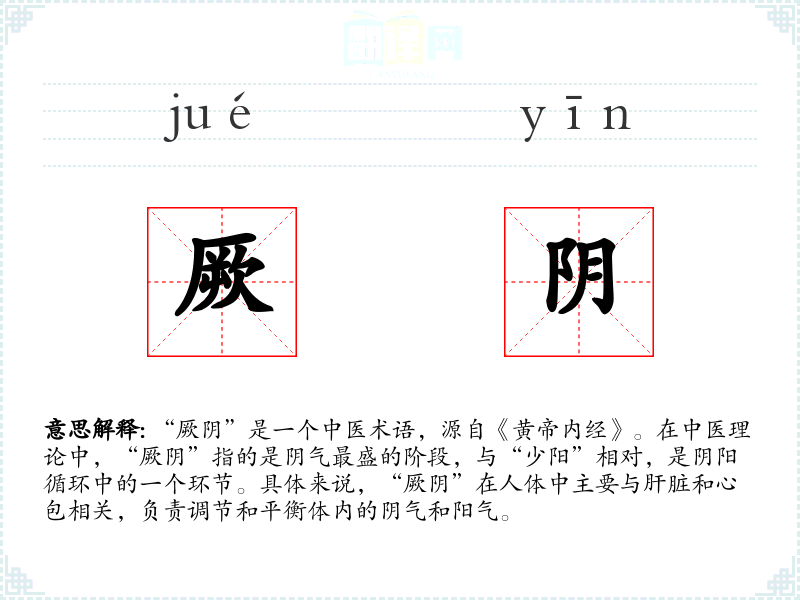 "厥阴"的意思解释、厥阴是什么意思由翻译网汉语词典查词提供。