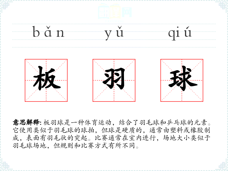- 专业领域:在体育科学或体育教育领域,板羽球可能被详细讨论其**技巧、健康益处和比赛策略。