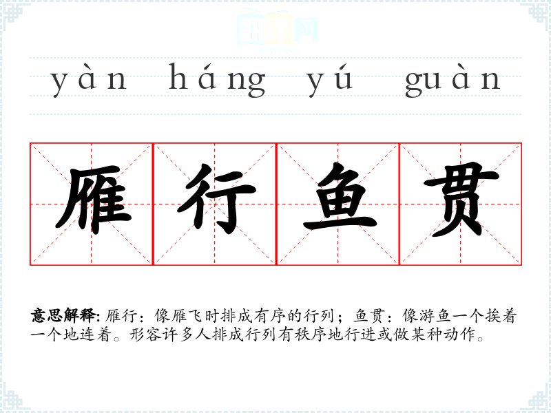 雁行鱼贯的分字解释