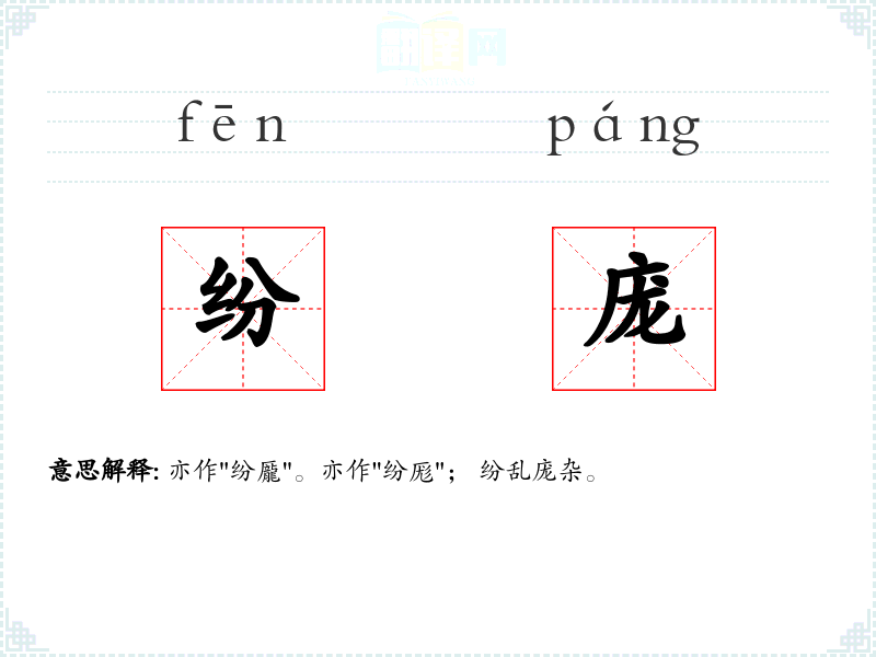 亦作"纷龎"。亦作"纷厖"; 纷乱庞杂。
