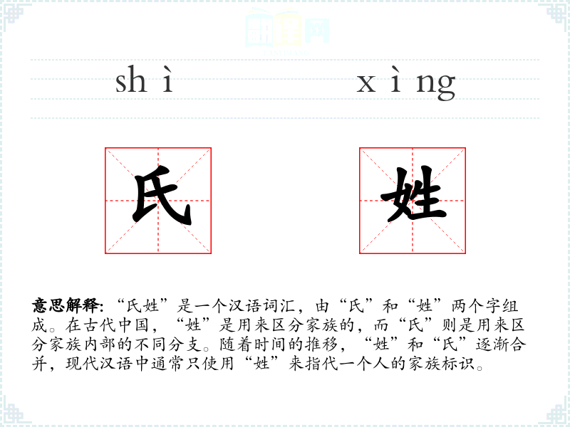 “氏姓”是一个汉语词汇,由“氏”和“姓”两个字组成。在古代**,“姓”是用来区分家族的,而“氏”则是用来区分家族内部的不同分支。随着时间的推移,“姓”和“氏”逐渐合并,现代汉语中通常只使用“姓”来指代一个人的家族标识。