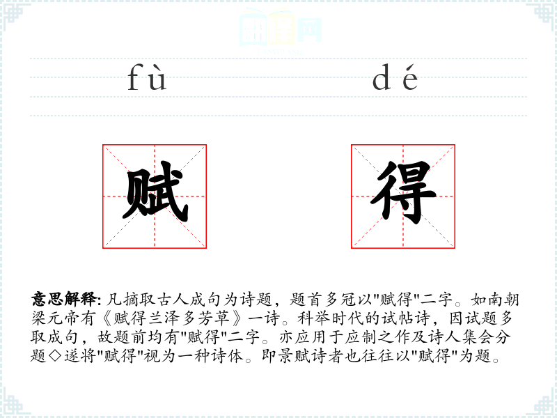 "赋得"的意思解释、赋得是什么意思由翻译网汉语词典查词提供。