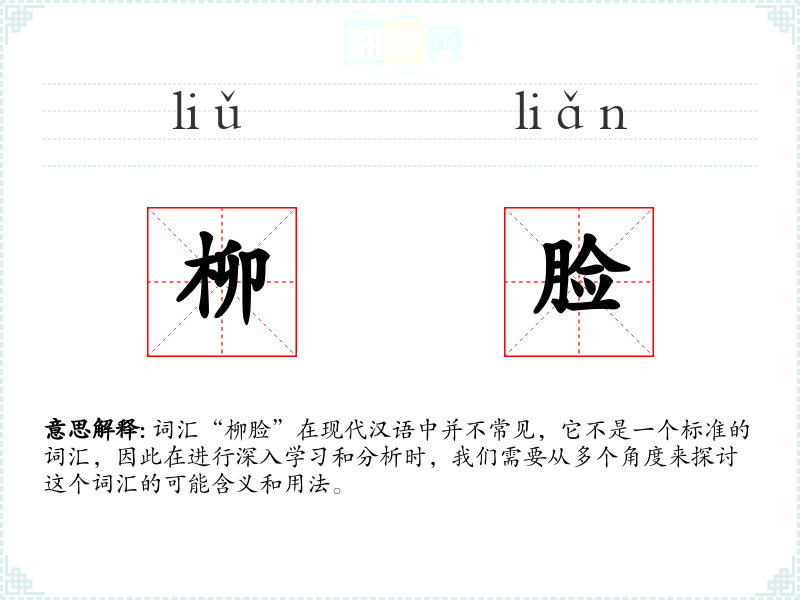 由于“柳脸”不是一个常用词汇,它在不同语言或文化中的对应词汇及其使用情况不明确。