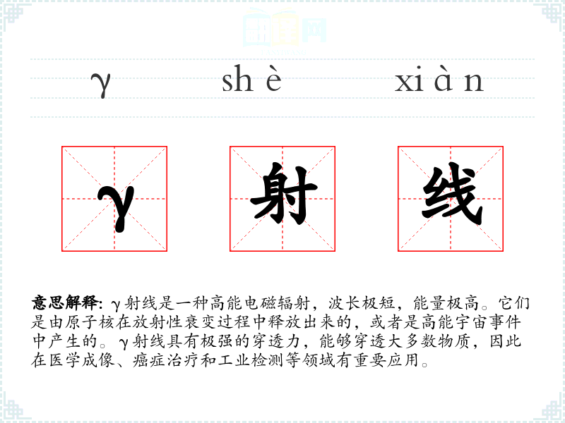 "γ射线"的意思解释、γ射线是什么意思由翻译网汉语词典查词提供。