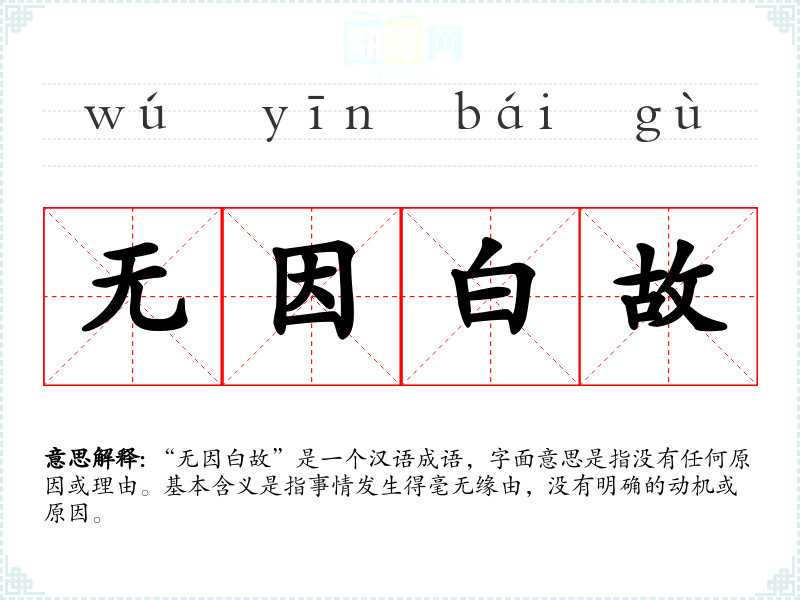 在英语中,类似的表达可能是“for no reason”或“out of the blue”,它们都表达了类似的无理由性。在不同文化中,人们对于无因白故的**可能有不同的解释和反应。
