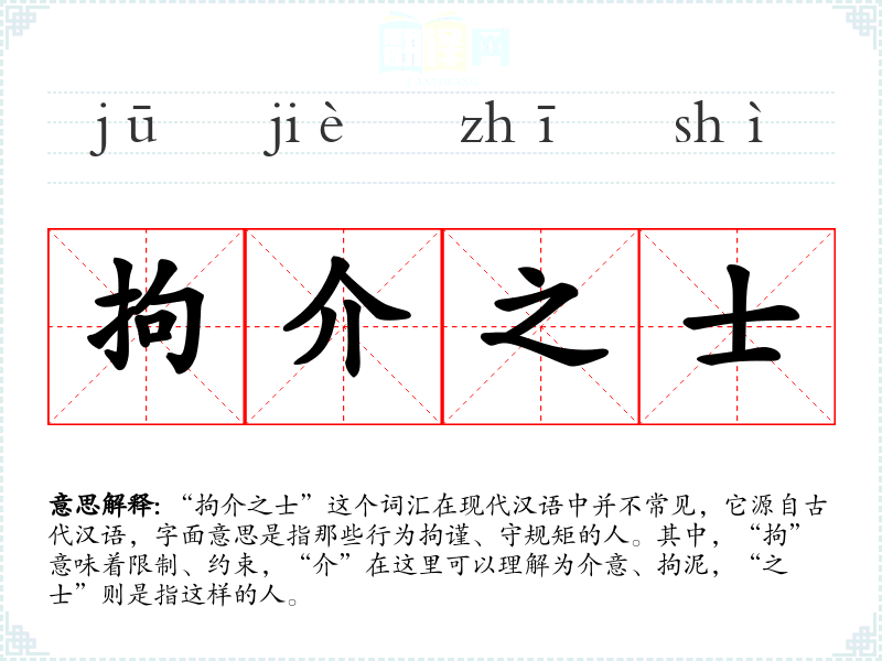 “拘介之士”这个词汇的词源可以追溯到古代汉语,特别是在描述那些过分注重礼仪和规矩的人物时使用。随着时间的推移,这个词汇的使用频率逐渐降低,现代汉语中很少见到。