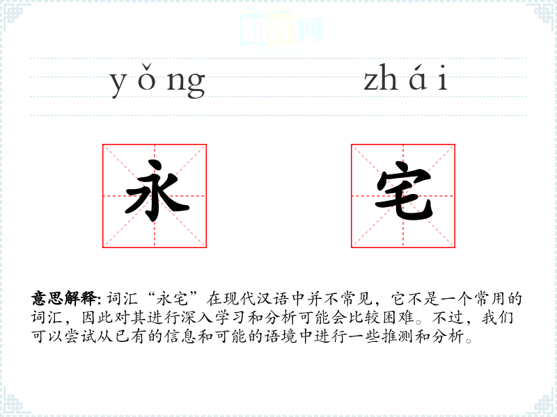 由于“永宅”不是一个常用词汇,其词源和演变可能没有详细记录。它可能是由“永”和“宅”两个常用字组合而成的新词,用于特定语境或文学创作中。