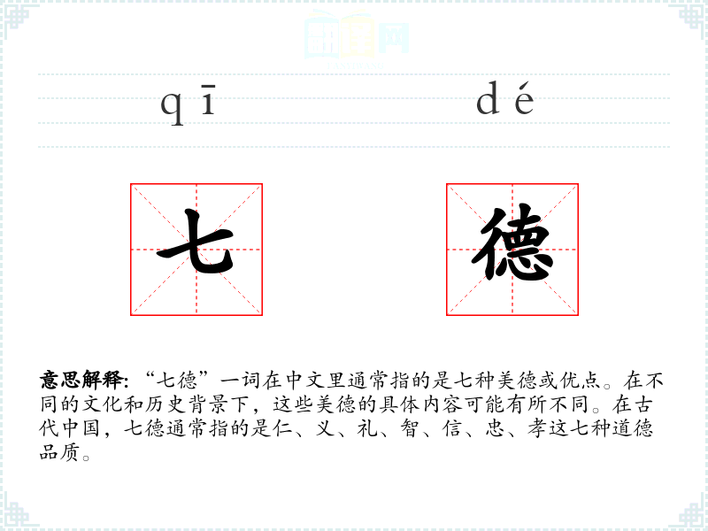 - 口语:在日常对话中,人们可能会用“七德”来概括一个人的优秀品质,或者在教育孩子时提及这些美德。