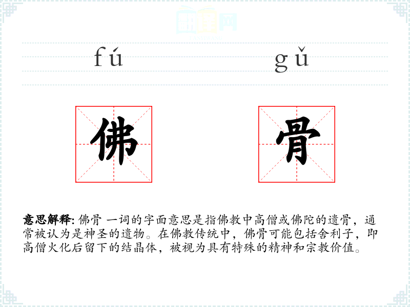佛骨 一词不仅是一个词汇,更是一个承载着深厚*和文化意义的符号。在语言学和表达中,理解和运用这样的词汇能够丰富我们的语言表达,增强对不同文化的理解和尊重。
