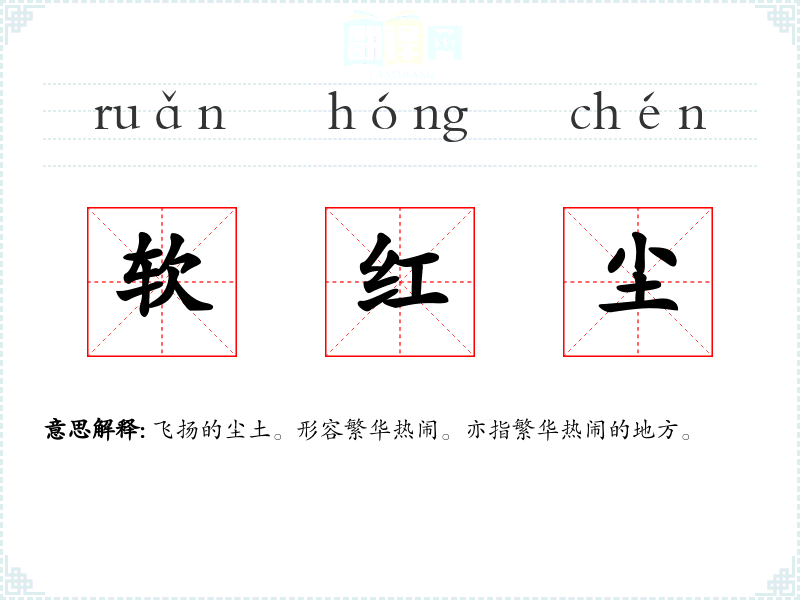 飞扬的尘土。形容繁华热闹。亦指繁华热闹的地方。