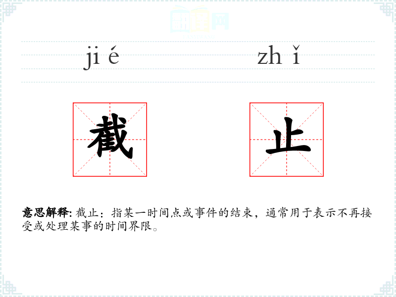 截止:指某一时间点或**的结束,通常用于表示不再接受或处理某事的时间界限。