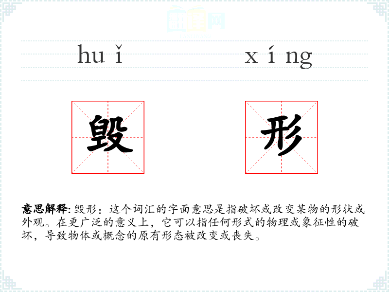 "毁形"的意思解释、毁形是什么意思由翻译网汉语词典查词提供。