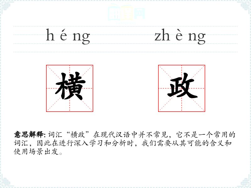 词汇“横政”在现代汉语中并不常见,它不是一个常用的词汇,因此在进行深入学*和分析时,我们需要从其可能的含义和使用场景出发。