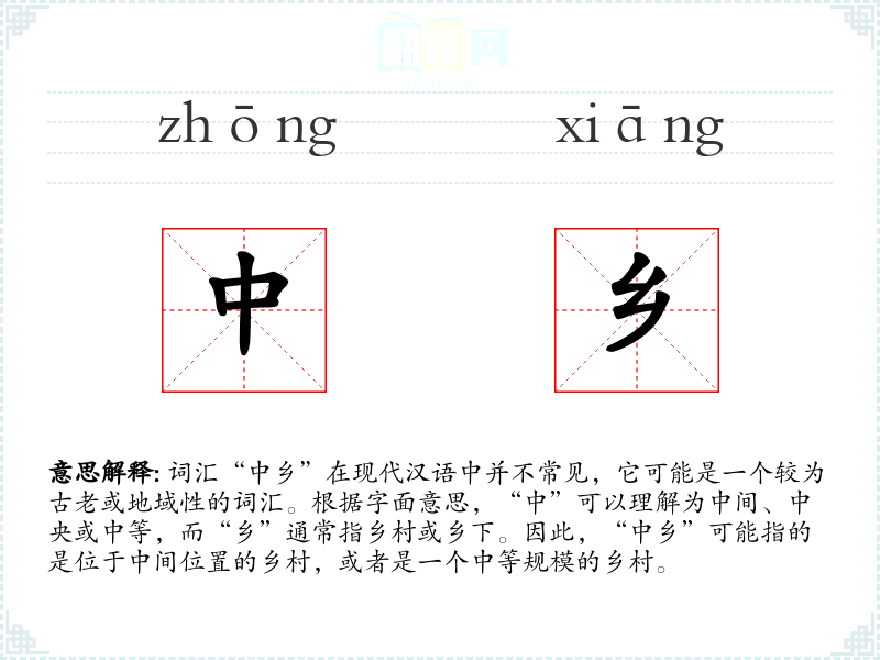 - 词源:“中乡”可能是由“中”和“乡”两个字组合而成,反映了古代对地理位置的描述。