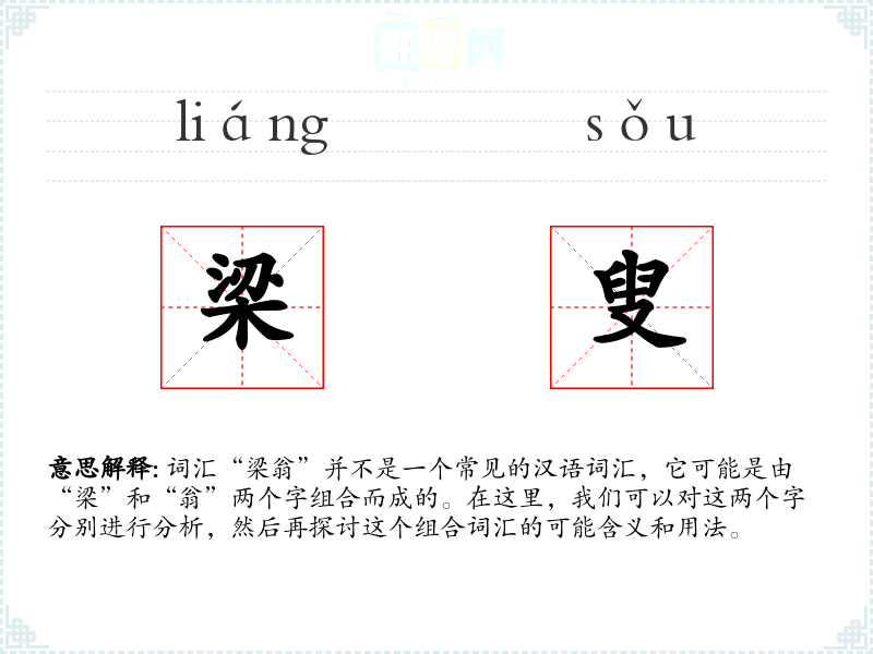词汇“梁翁”并不是一个常见的汉语词汇,它可能是由“梁”和“翁”两个字组合而成的。在这里,我们可以对这两个字分别进行分析,然后再探讨这个组合词汇的可能含义和用法。