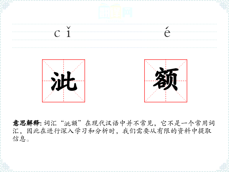 词汇“泚额”在现代汉语中并不常见,它不是一个常用词汇,因此在进行深入学习和分析时,我们需要从有限的资料中提取信息。