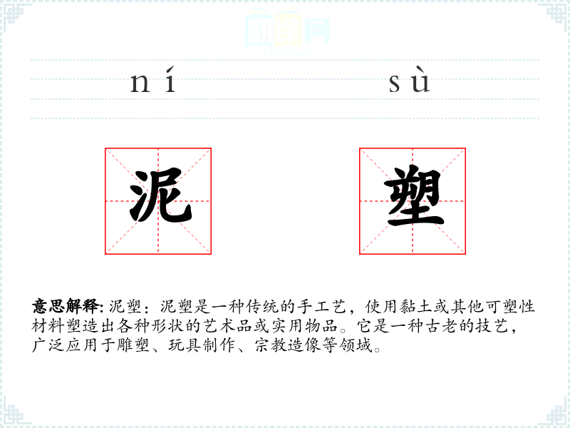 "泥塑"的意思解释、泥塑是什么意思由翻译网汉语词典查词提供。