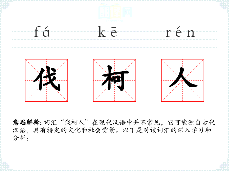 词汇“伐柯人”在现代汉语中并不常见,它可能源自古代汉语,具有特定的文化和社会背景。以下是对该词汇的深入学习和分析: