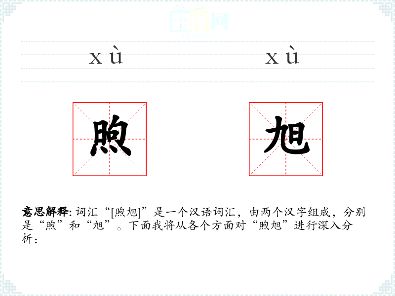 词汇“[煦旭]”是一个汉语词汇,由两个汉字组成,分别是“煦”和“旭”。下面我将从各个方面对“煦旭”进行深入分析: