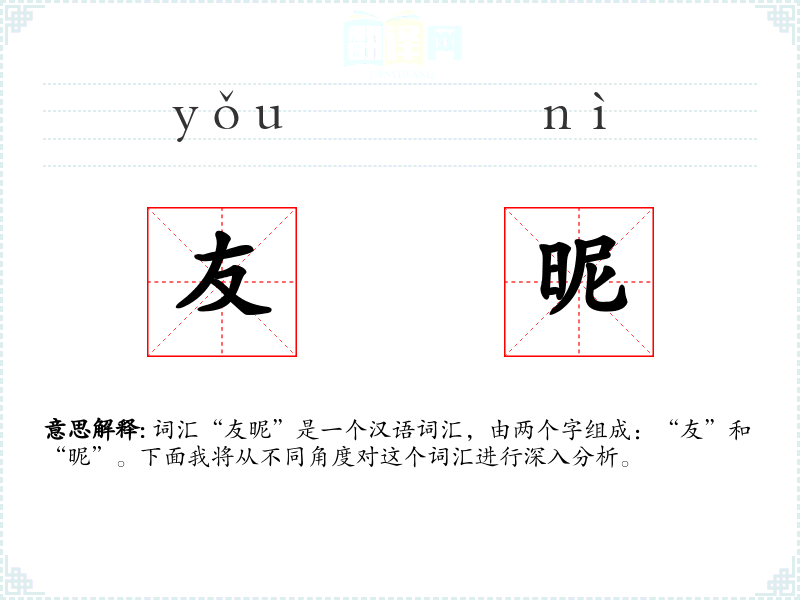 词汇“友昵”是一个汉语词汇,由两个字组成:“友”和“昵”。下面我将从不同角度对这个词汇进行深入分析。