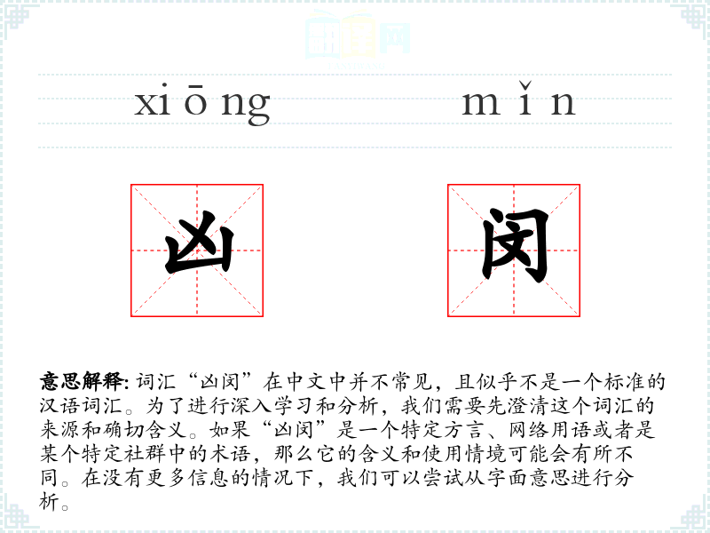 由于“凶闵”不是一个标准词汇,我们无法对其进行深入的分析和总结。如果这是一个特定领域的术语或者是某个特定社群中的用语,建议查阅相关文献或询问该领域的专家以获取更多信息。