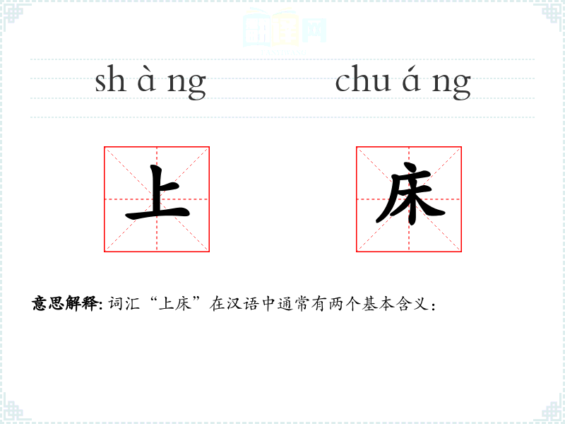 词汇“上床”在汉语中通常有两个基本含义:
