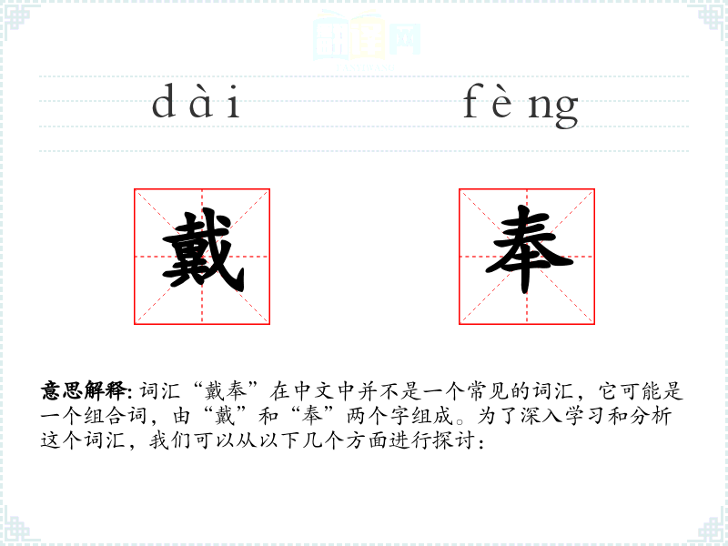 词汇“戴奉”在中文中并不是一个常见的词汇,它可能是一个组合词,由“戴”和“奉”两个字组成。为了深入学习和分析这个词汇,我们可以从以下几个方面进行探讨:
