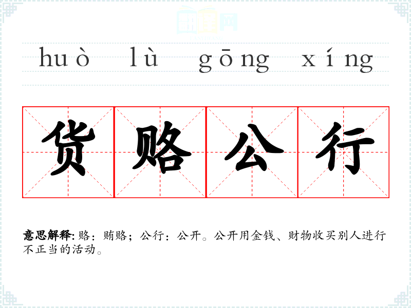 赂:贿赂;公行:公开。公开用金钱、财物收买别人进行不正当的活动。