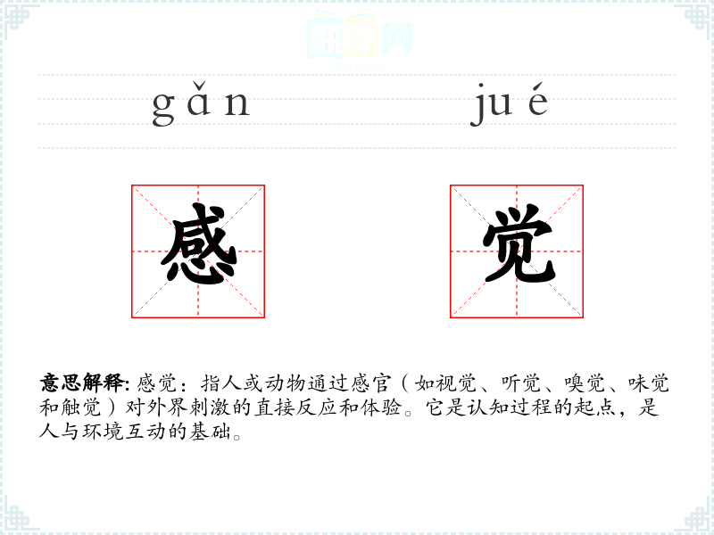 - 词源:“感觉”一词源于古汉语,最初指“感触”或“感知”。
