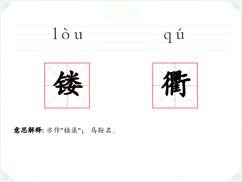 亦作"镂渠"; 马鞍名。