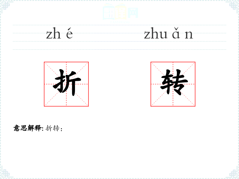 - 词源:折转由“折”和“转”两个字组成,分别表示弯曲和改变方向。