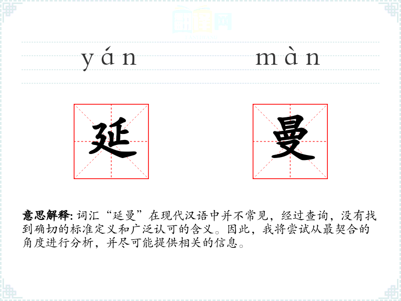 词汇“延曼”在现代汉语中并不常见,经过查询,没有找到确切的标准定义和广泛认可的含义。因此,我将尝试从最契合的角度进行分析,并尽可能提供相关的信息。